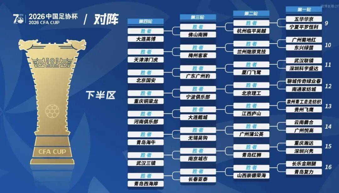 南通支云的对手是山西太理昌盛、大连可为和温州俱乐部的胜者。如果顺利晋级,将在第四轮面对中超球队辽宁铁人。